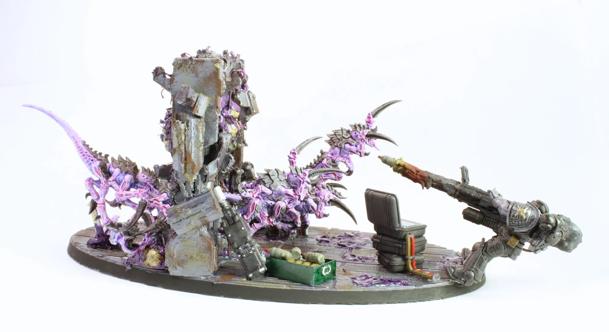 I wanted to capture that specific moment. Not the wider battle, not the last stand in general, just Grimaldus, mid-strangle, refusing to die in a pile of cathedral rubble.