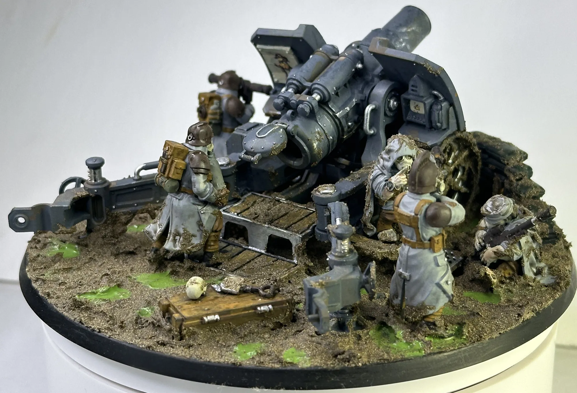 This one isn’t a traditional diorama on a display base. It’s the Krieg artillery kit, but instead of just assembling it stock and putting it on the table, I wanted it to feel like a snapshot of life in the trenches.